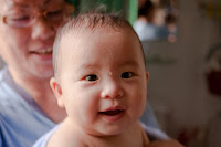 Now qiqi is one sweaty baby. So the best time to take a photo of a big chubby sweaty baby is after bathing and after a meal.